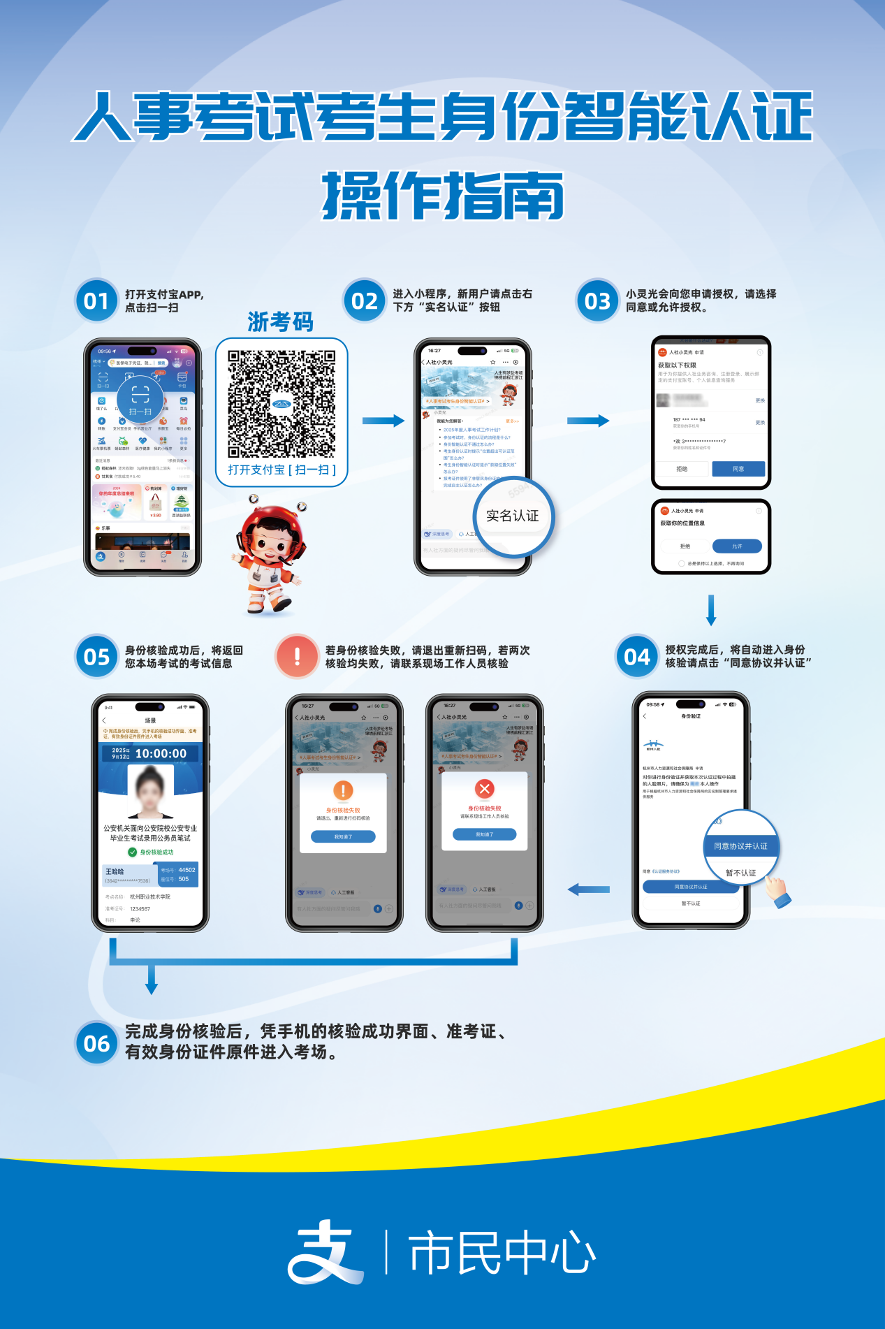 為進一步加強人事考試考生身份認證管理,維護考試安全秩序,防范舞弊行為,優化考生體驗,浙江省社會保險和就業服務中心人事考試院推出“人事考試身份智能認證”,用于開展考生入場身份核驗,現就有關事宜提示如下: